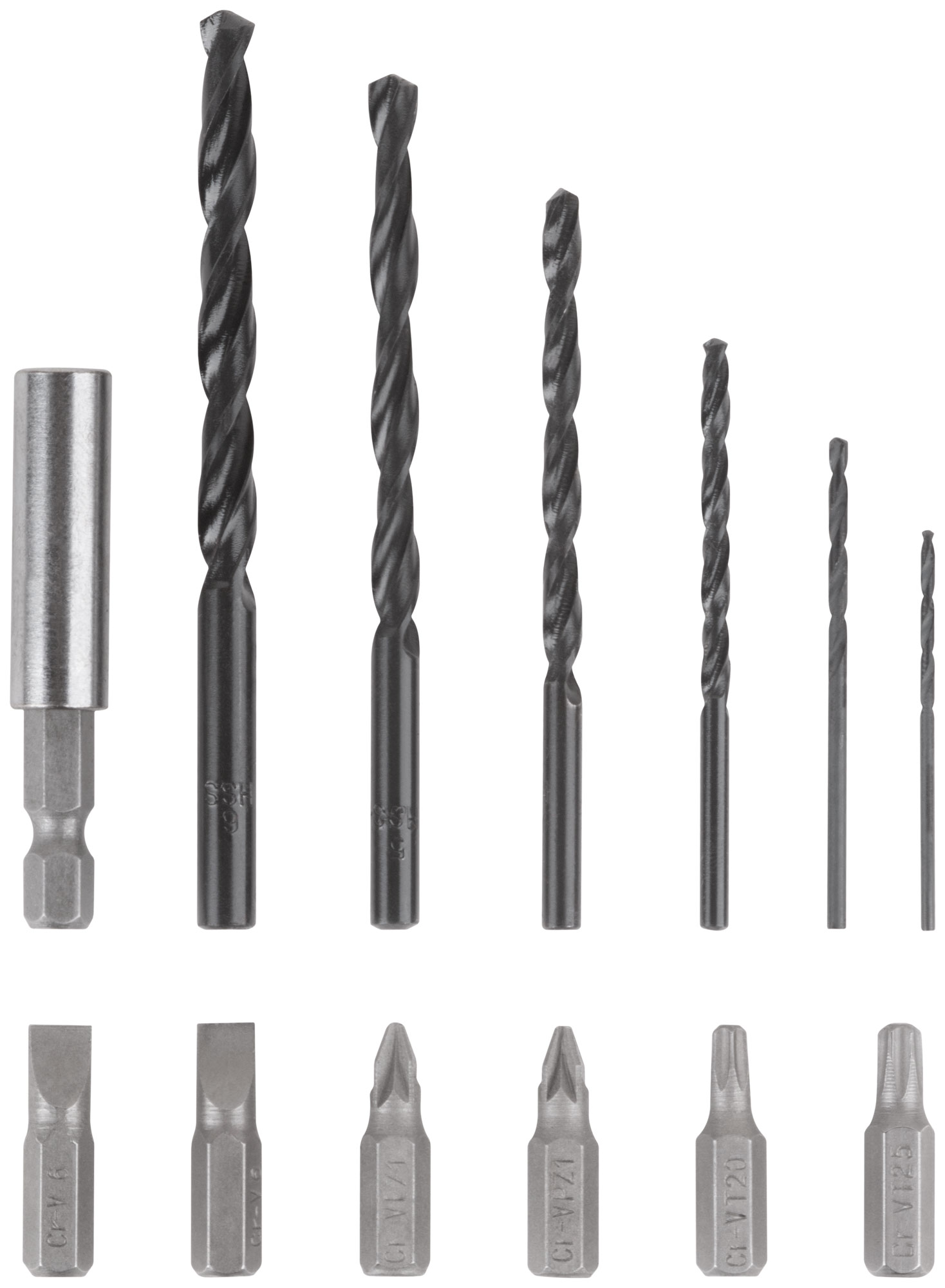 - Быстрозажимной патрон 10 мм для легкой смены сверл и бит.