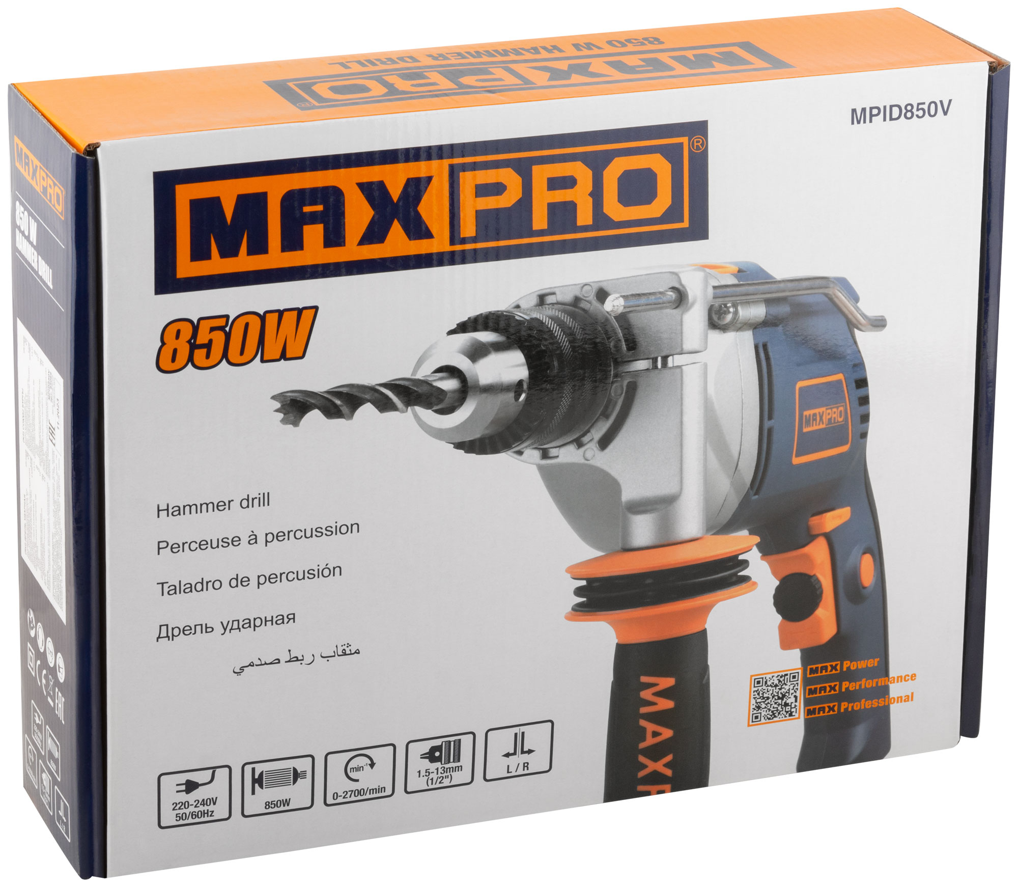 Выберите дрель MAX-PRO 850 Вт, чтобы обеспечить себе надежного помощника для любых строительных задач.