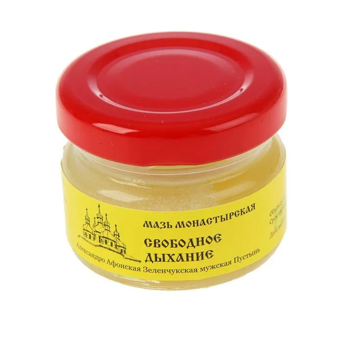 Монастырская мазь «Свободное дыхание» эффективна при лечении простуды, отитов и гайморита.