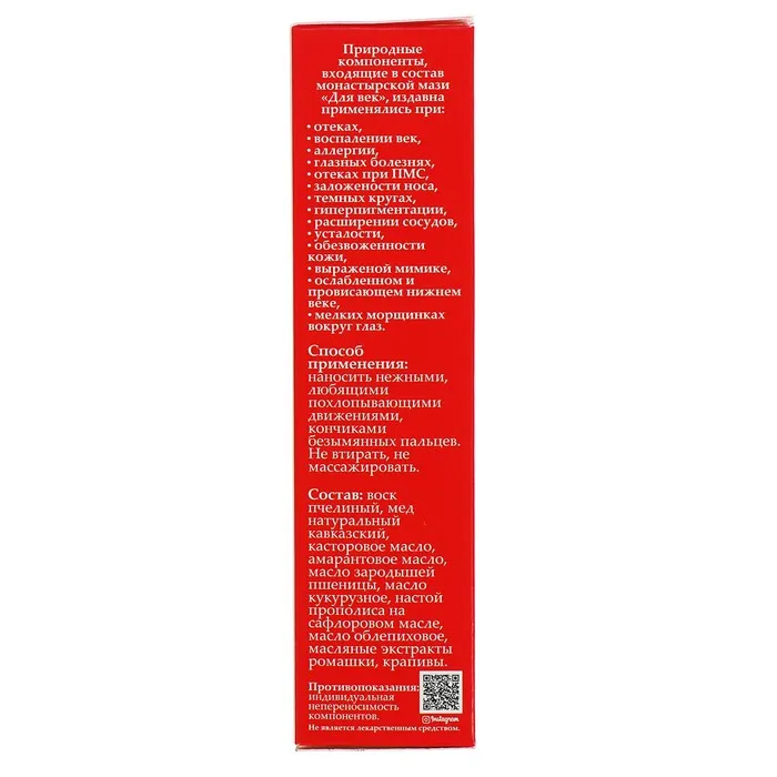 Мазь монастырская «Для век», 20 мл — Характеристики