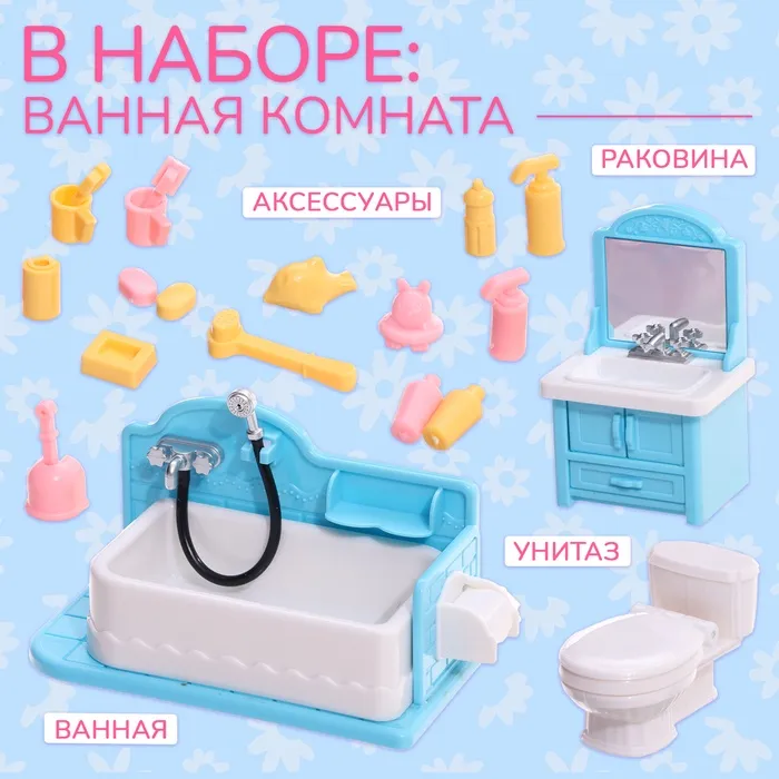 Мебель для кукол «Крошики. Уютный дом», ванная, набор 20 предметов — Характеристики
