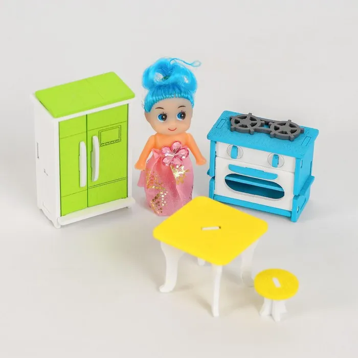 Мебель для кукол «Кухня» + куколка в подарок — это отличный набор для сюжетных игр, который позволит маленьким хозяюшкам обустроить кукольную кухню. В комплект входят стол, стулья, шкаф и плита, которые легко собираются и создают полноценную кухонную зону.