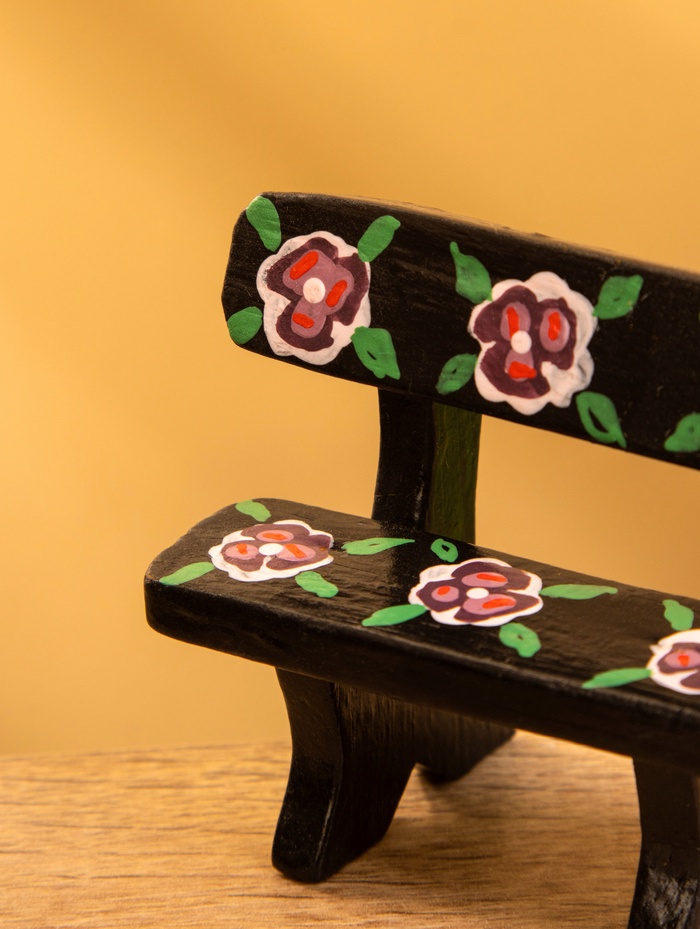 Мебель для кукол «Скамейка с цветами», 6.5×3.5×6 см, дерево, чёрная — Характеристики