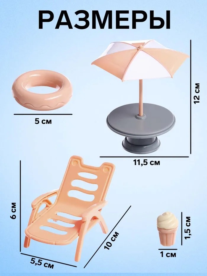 Игровой набор мебели для питомцев «Отдых на пляже» станет отличным дополнением к игрушечному миру ребёнка. Яркие аксессуары помогут создать атмосферу летнего отдыха и весёлых игр.