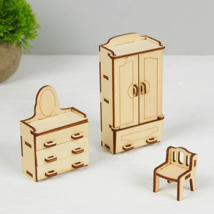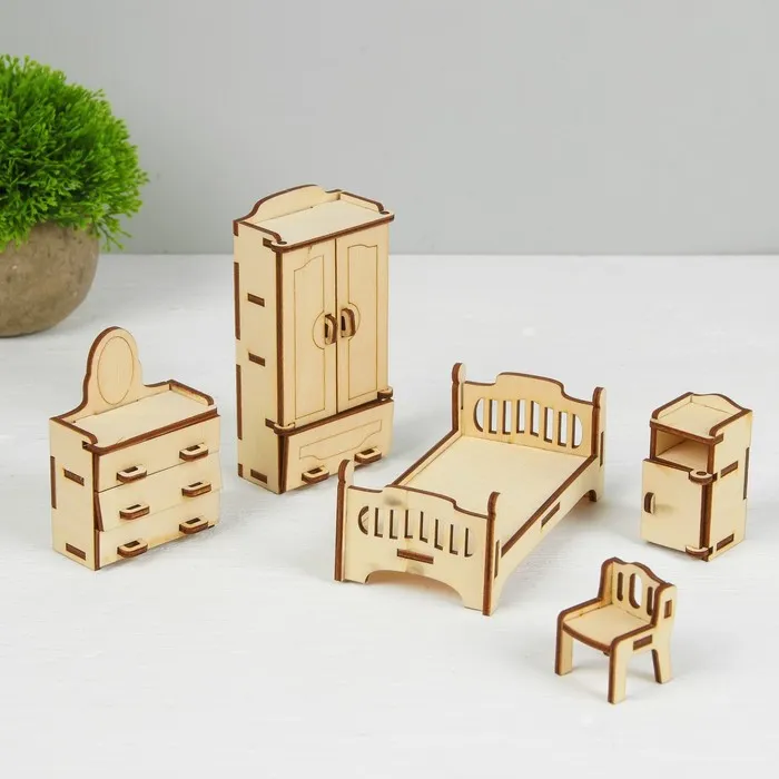 Создайте миниатюру настоящей комнаты из деревянных деталей. Предметы мебели сделаны из экологически натурального и безопасного материала. Изделия выглядят очень реалистично и идеально подойдут как для игр малыша, так и в качестве декора для детской.