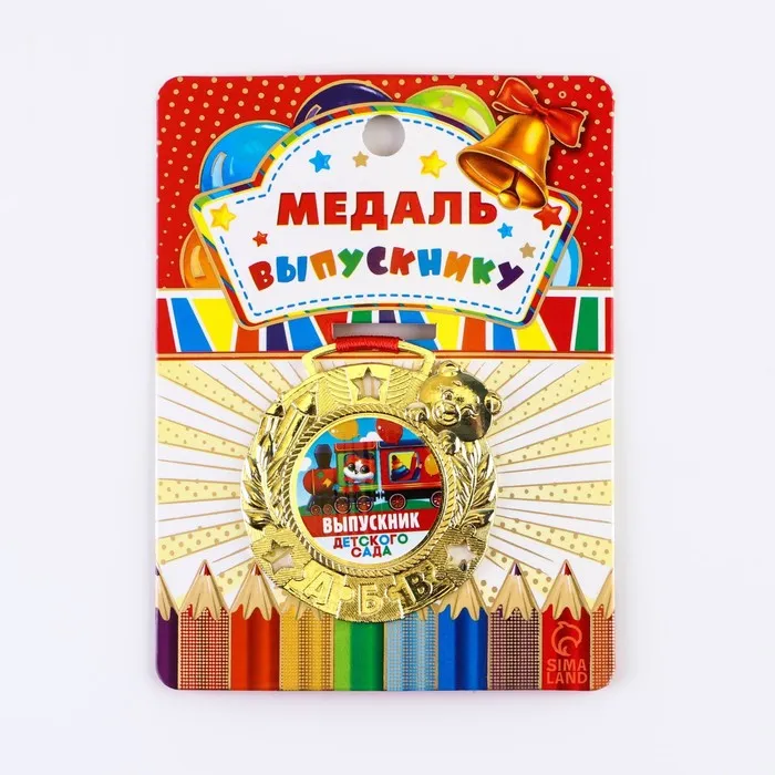 Медаль детская на Выпускной «Выпускник детского сада», на ленте, золото, металл, d = 5,5 см — Характеристики