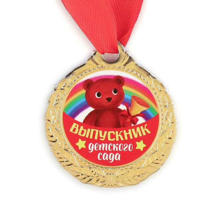 Медаль детская на выпускной «Выпускник детского сада», на ленте, золото, металл, d=4 см