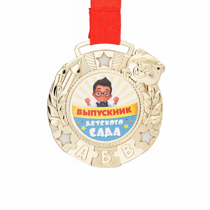 Медаль детская на выпускной «Выпускник детского сада», на ленте, золото, металл, d=5.5 см