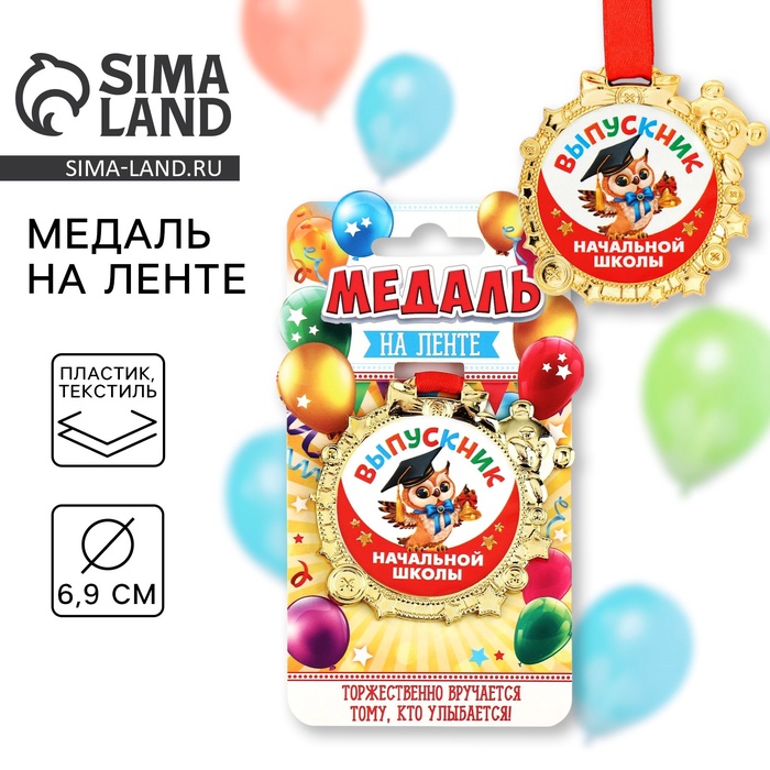 Медаль детская на Выпускной «Выпускник начальной школы», на ленте, золото, пластик, 6,9 х 6,9 см — Характеристики