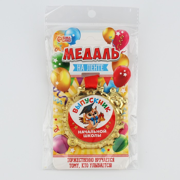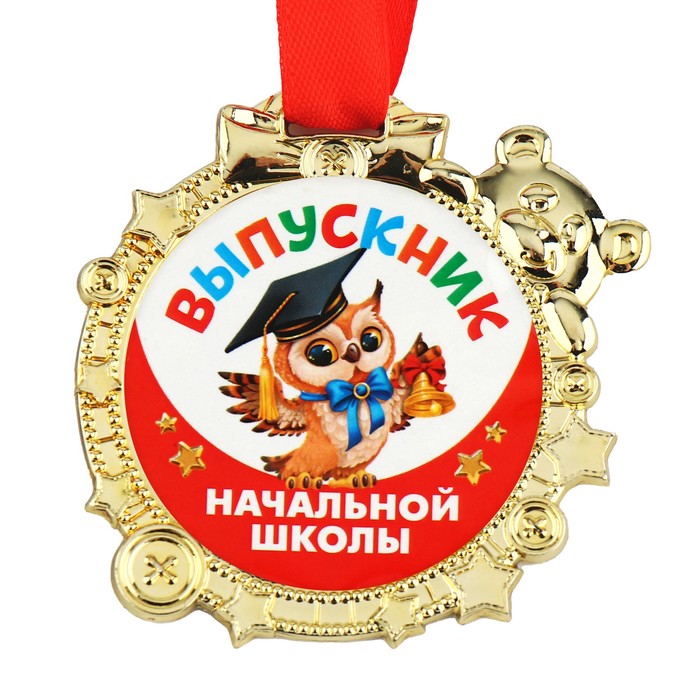 Медаль детская на Выпускной «Выпускник начальной школы», на ленте, золото, пластик, 6,9 х 6,9 см — Характеристики