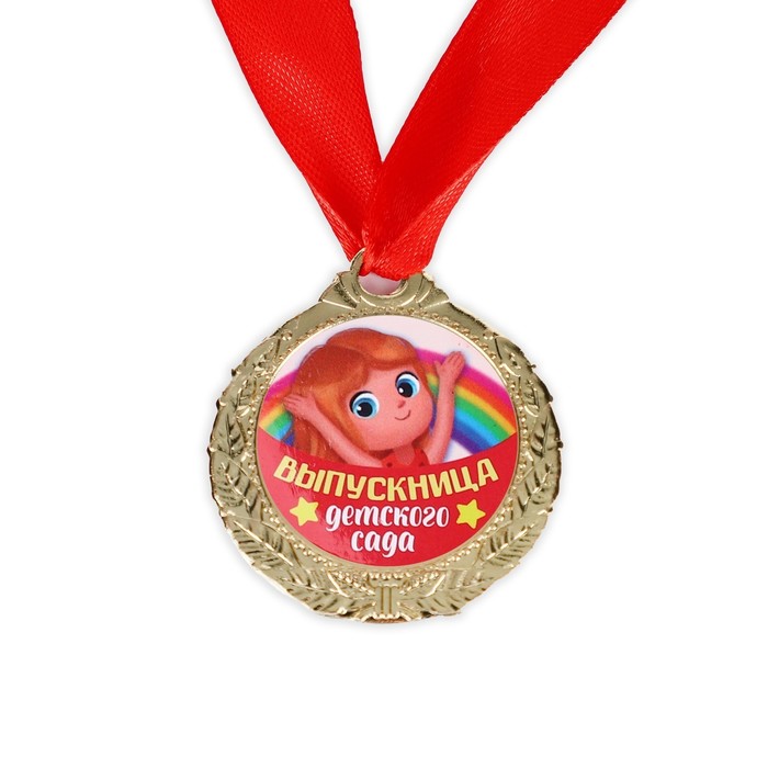 Медаль детская на Выпускной «Выпускница детского сада», на ленте, золото, металл, d = 4 см — Характеристики