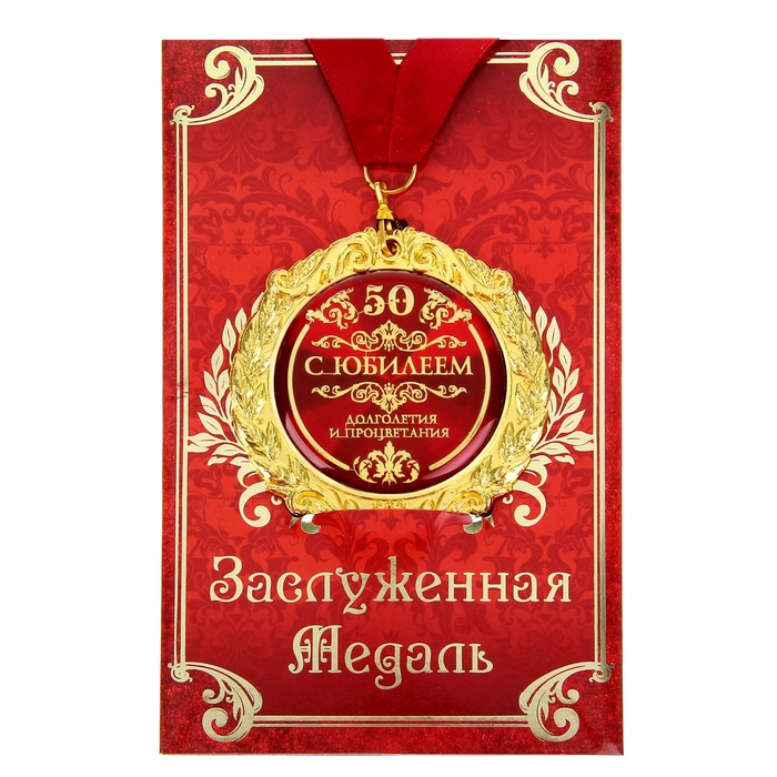 Медаль юбилейная на открытке «С юбилеем 50», d=7 см Создана формула идеального поздравления: классическая форма и праздничное содержание. Оригинальная медаль – отличная награда для самых достойных представителей своего времени. Эксклюзивный сувенир станет достойным украшением вечера и поможет создать незабываемое поздравление!