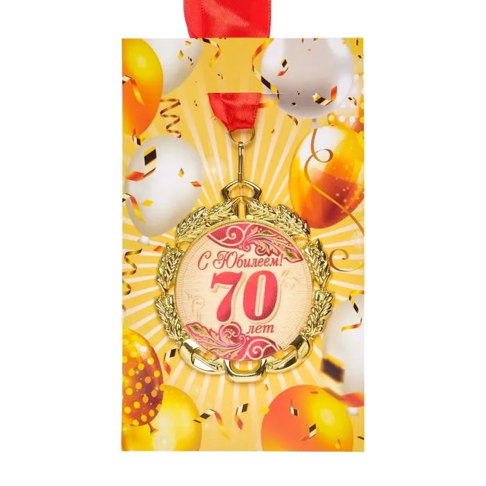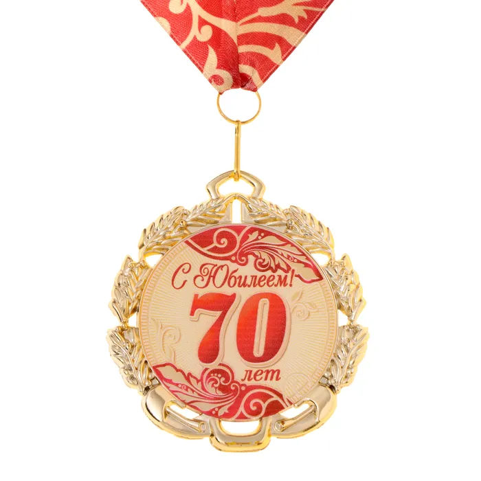Медаль юбилейная с лентой "70 лет. Красная", D = 70 мм