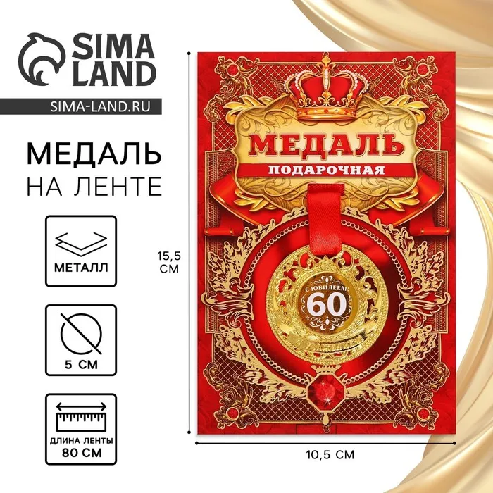Медаль юбилейная царская «С юбилеем 60», d=5 см — Характеристики