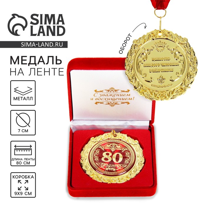 Металлическая медаль с гравировкой на обороте преподносится на красочной подложке с европетлёй.