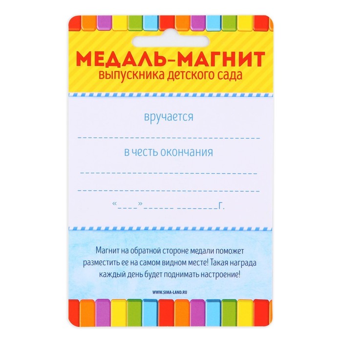 Медаль-магнит на ленте на выпускной «Выпускник детского сада», d=8.5 см — Характеристики