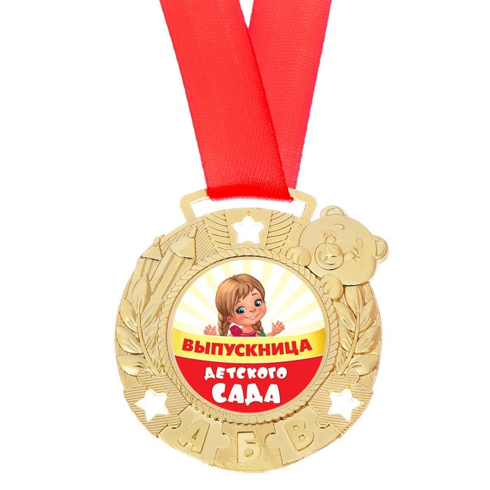 Медаль на ленте на выпускной «Выпускница детского сада», на ленте, золото, металл, d=5.5 см — Характеристики