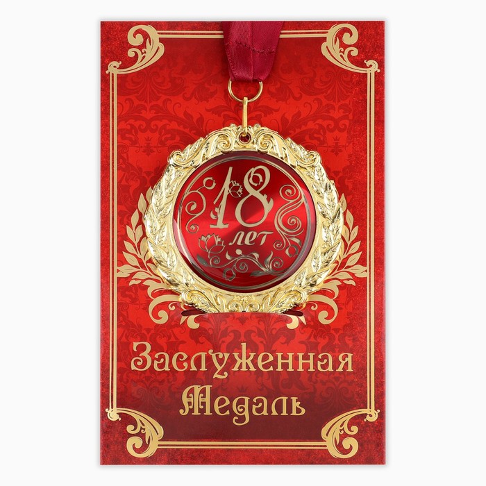 Медаль на открытке «18 лет», d=7 см Создана формула идеального поздравления: классическая форма и праздничное содержание. Оригинальная медаль – отличная награда для самых достойных представителей своего времени. Эксклюзивный сувенир станет достойным украшением вечера и поможет создать незабываемое поздравление!