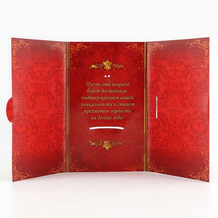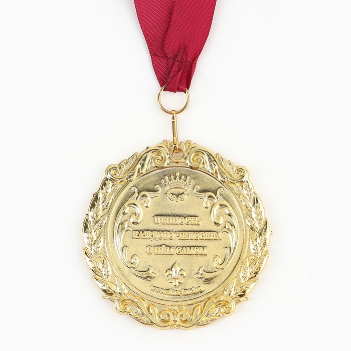 Медаль в подарочной открытке изготовлена из золотистого металла, идет в комплекте с лентой, упакована в открытку с торжественным приветствием для адресата. Удивляйте и награждайте!