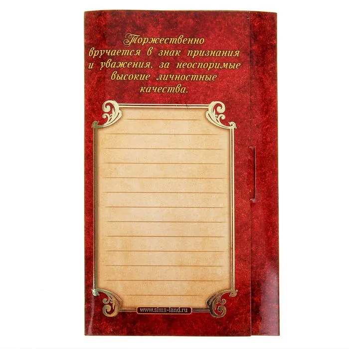 Медаль в подарочной открытке изготовлена из золотистого металла, идет в комплекте с лентой, упакована в открытку с торжественным приветствием для адресата. Удивляйте и награждайте!