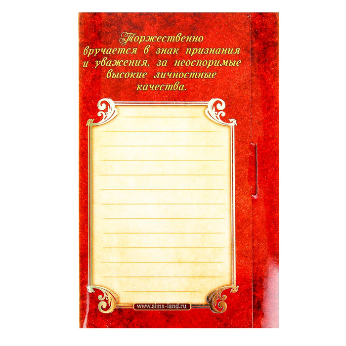 Медаль в подарочной открытке изготовлена из золотистого металла, идет в комплекте с лентой, упакована в открытку с торжественным приветствием для адресата. Удивляйте и награждайте!