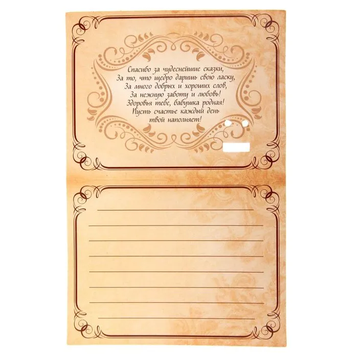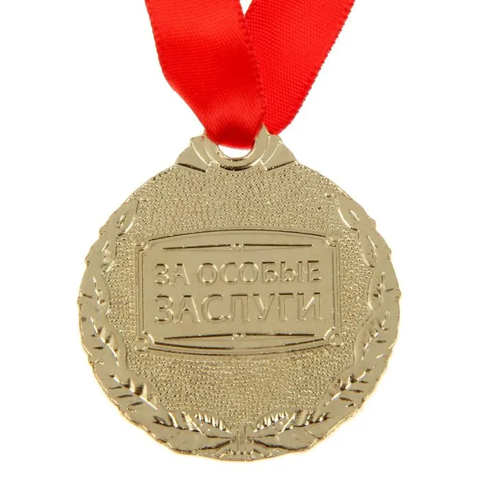 Металлическая медаль преподносится на красочной открытке с тёплыми словами и полем для собственных пожеланий.