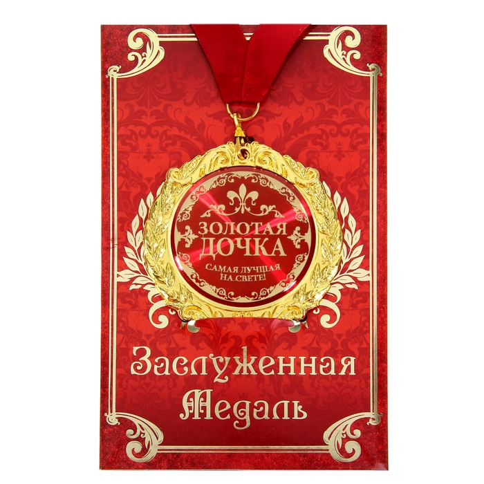 Медаль на открытке «Золотая дочка», d=7 см Создана формула идеального поздравления: классическая форма и праздничное содержание. Оригинальная медаль – отличная награда для самых достойных представителей своего времени. Эксклюзивный сувенир станет достойным украшением вечера и поможет создать незабываемое поздравление!