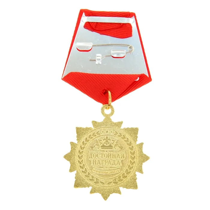 Награда изготовлена из металла, украшена стразами и вставкой с глянцевым акриловым покрытием, которое предотвращает потускнение и приятно на ощупь. Яркая колодка дополнена булавкой, чтобы вы могли закрепить сувенир на одежде.