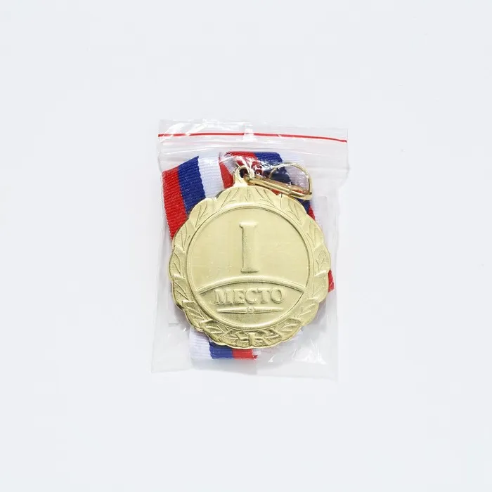 Медаль призовая 001, d= 5 см. 1 место. Цвет золото. С лентой — Характеристики