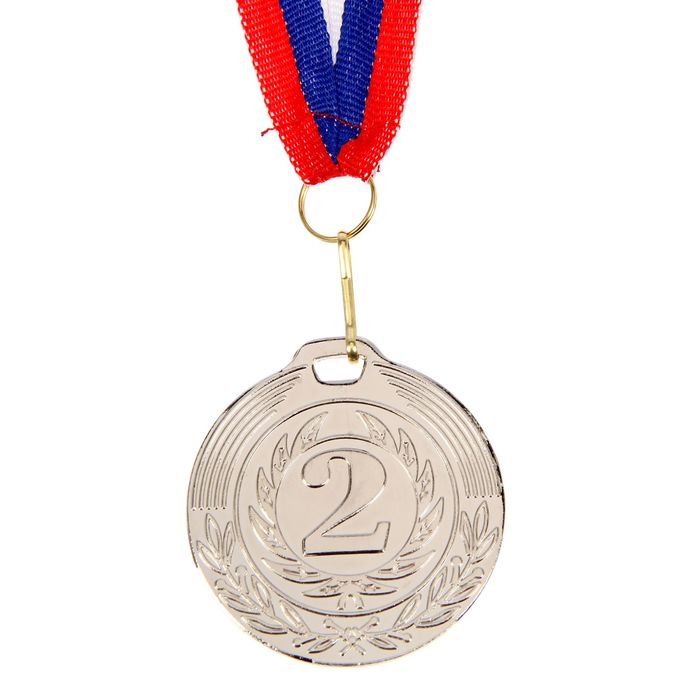 Медаль призовая 049, d= 5 см. 2 место. Цвет серебро. С лентой — Характеристики