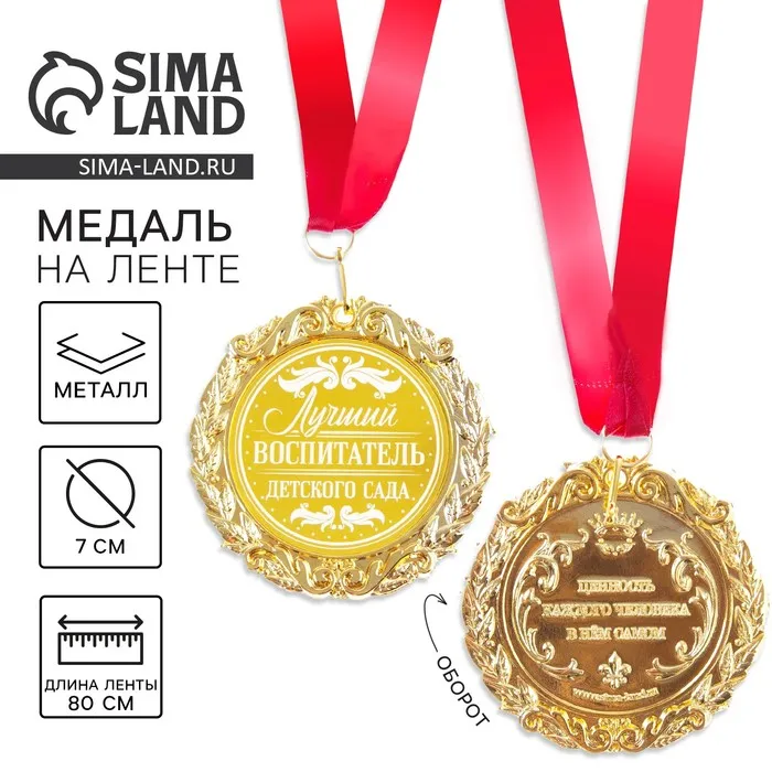 Сделать любое поздравление особенным поможет медаль с лазерной гравировкой «Лучший воспитатель», d=7 см.! Такая награда преподносится лишь самым достойным. Разработанная в эксклюзивном дизайне медаль станет отличным дополнением любого подарка и создаст торжественное настроение!