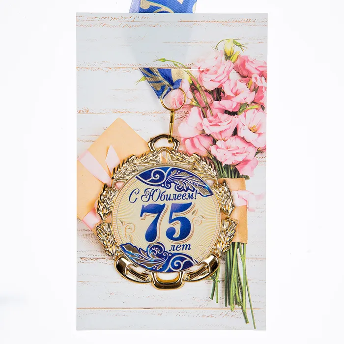 Медаль с лентой "75 лет. Синяя", D = 70 мм