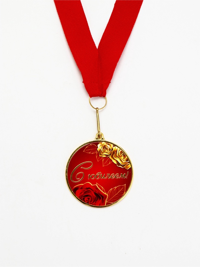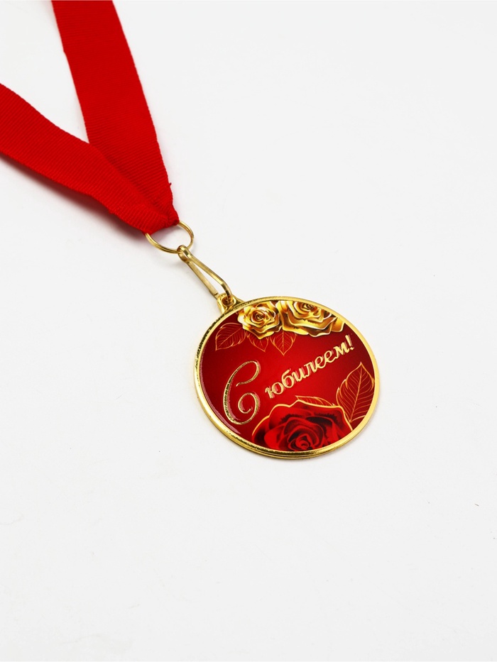 Медаль с уф-печатью «С юбилеем», диам. 5 см, золотая, с лентой — Характеристики