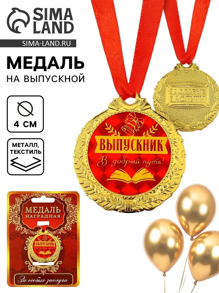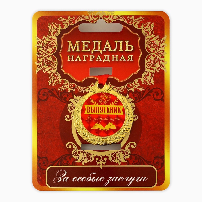 Медаль школьная на выпускной «Выпускник, добрый путь», на ленте, золото, металл, d=4 см