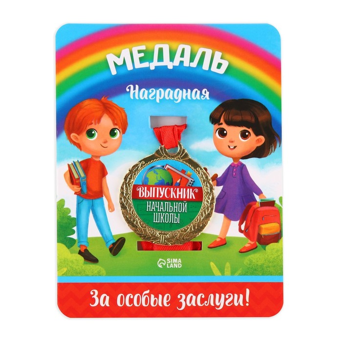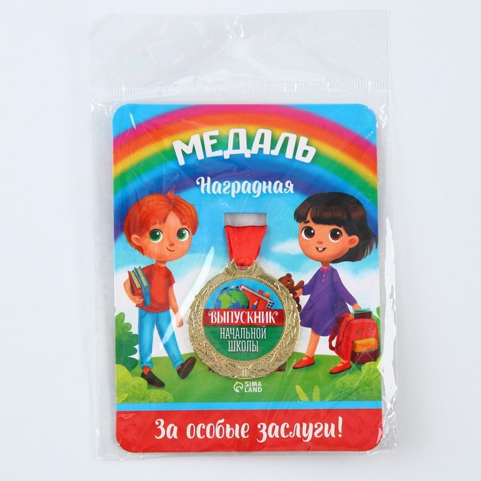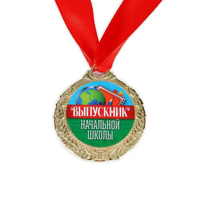 Медаль школьная на Выпускной «Выпускник начальной школы», на ленте, золото, металл, d = 4 см — Характеристики