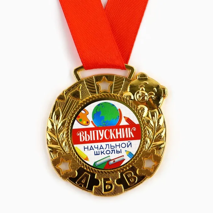 Медаль школьная на Выпускной «Выпускник начальной школы», на ленте, золото, металл, d = 5,5 см — Характеристики