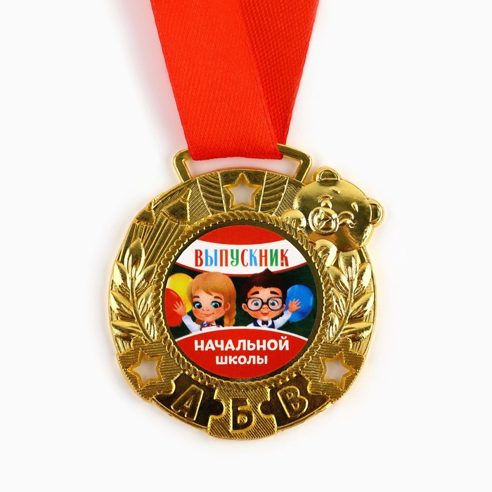 Медаль школьная на выпускной «Выпускник начальной школы», на ленте, золото, металл, d=5.5 см — Характеристики