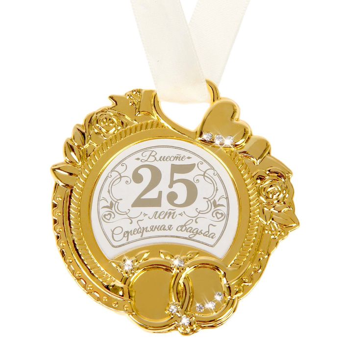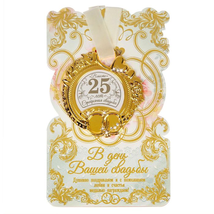 Медаль свадебная на открытке «Серебряная свадьба», d=8 см — Характеристики
