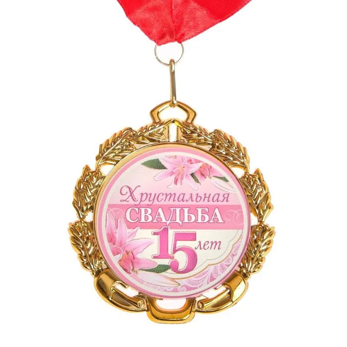 Медаль свадебная, с лентой "Хрустальная свадьба. 15 лет", D = 70 мм — Характеристики