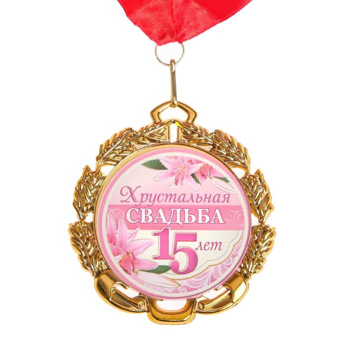 Медаль свадебная, с лентой "Хрустальная свадьба. 15 лет", D = 70 мм