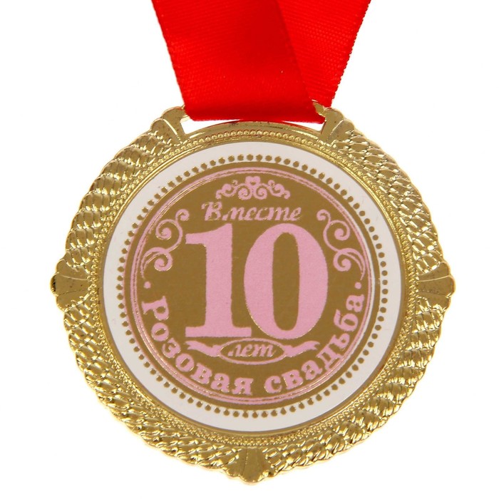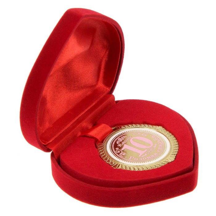 Медаль свадебная в бархатной коробке «Розовая свадьба. 10 лет вместе», d=5 см — Характеристики