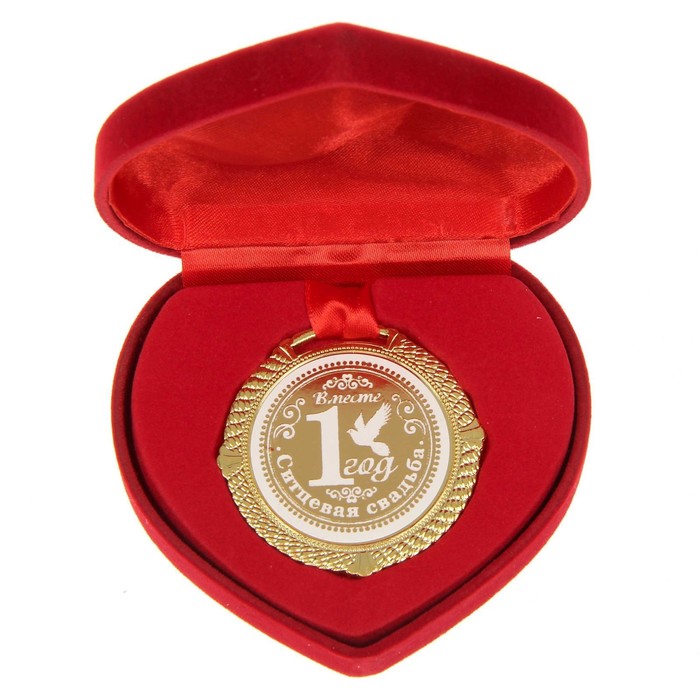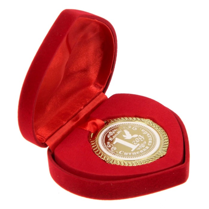 Медаль свадебная в бархатной коробке «Ситцевая свадьба, 1 год вместе», d=5 см — Характеристики