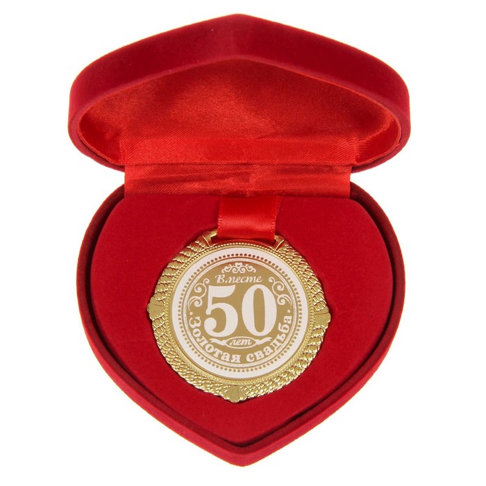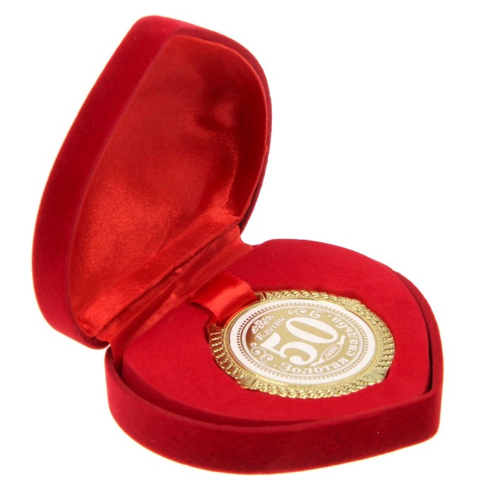 Медаль свадебная в бархатной коробке «Золотая свадьба 50 лет вместе», d= 5 см — Характеристики
