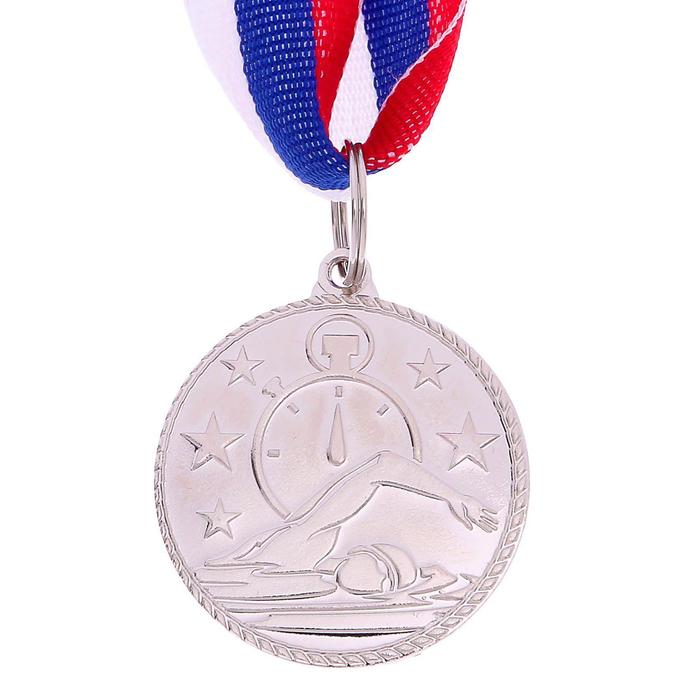 Медаль тематическая «Плавание», серебро, d=3,5 см