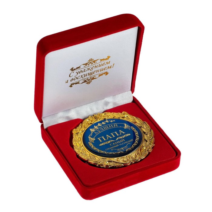 Создана формула идеального поздравления: классическая форма и праздничное содержание. Именно такой и является медаль в бархатной коробке «Лучший папа», d=7 см. Это отличная награда для самых достойных представителей своего времени. Эксклюзивный сувенир станет достойным украшением вечера и поможет создать незабываемую церемонию поздравления.