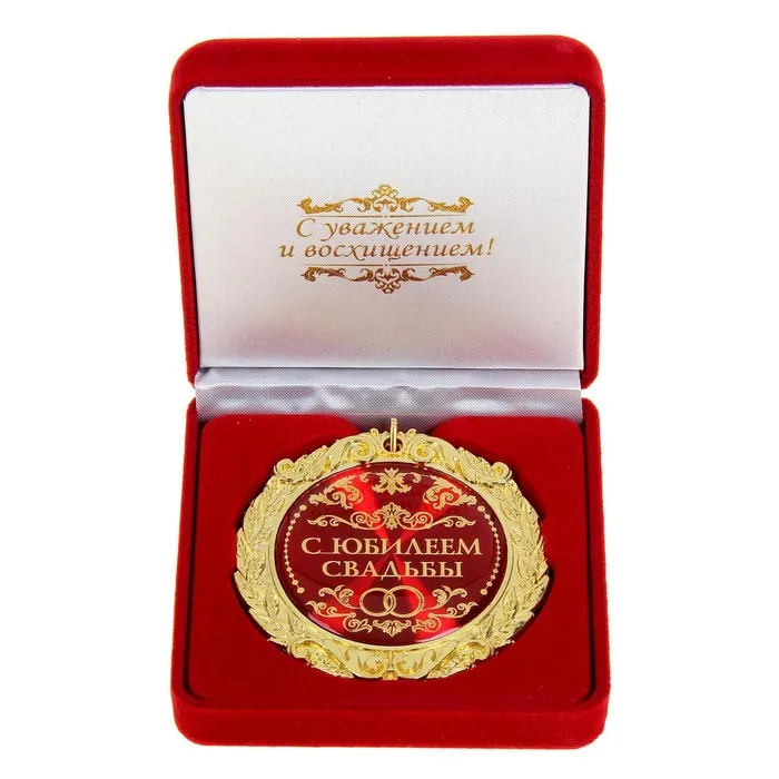 Создана формула идеального поздравления: классическая форма и праздничное содержание. Именно такой и является медаль в бархатной коробке свадебная «С юбилеем свадьбы», d=7 см. Это отличная награда для самых достойных представителей своего времени. Эксклюзивный сувенир станет достойным украшением вечера и поможет создать незабываемую церемонию поздравления.