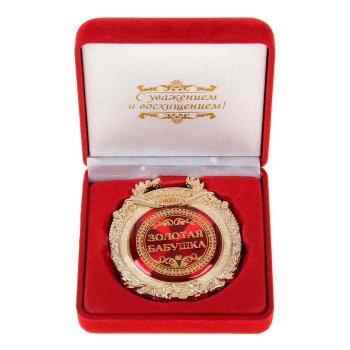Создана формула идеального поздравления: классическая форма и праздничное содержание. Именно такой и является медаль в бархатной коробке «Золотая бабушка», d= 6,5 см.. Это отличная награда для самых достойных представителей своего времени. Эксклюзивный сувенир станет достойным украшением вечера и поможет создать незабываемую церемонию поздравления.