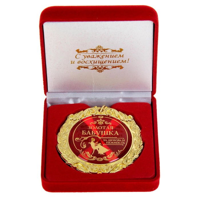 Создана формула идеального поздравления: классическая форма и праздничное содержание. Именно такой и является медаль в бархатной коробке «Золотая бабушка», d=7 см. Это отличная награда для самых достойных представителей своего времени. Эксклюзивный сувенир станет достойным украшением вечера и поможет создать незабываемую церемонию поздравления.