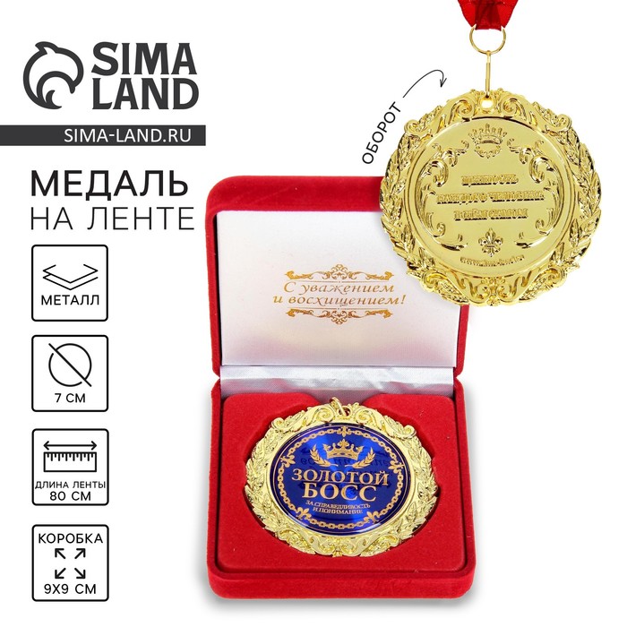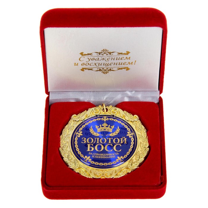 Создана формула идеального поздравления: классическая форма и праздничное содержание. Именно такой и является медаль в бархатной коробке «Золотой босс», d= 7 см.. Это отличная награда для самых достойных представителей своего времени. Эксклюзивный сувенир станет достойным украшением вечера и поможет создать незабываемую церемонию поздравления.