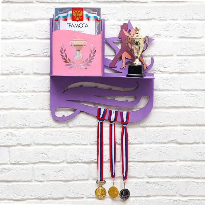 Для того чтобы ваши награды не пылились на полке, повесьте их на фигурную медальницу. Медальница дополнит декор дома спортсмена или отлично впишется в интерьер любого тематического спортклуба. Медали и награды заслуживают свое место в доме. Держатель для медалей будет напоминать Вам о Ваших достижениях, и вдохновлять на новые подвиги. Также медальница станет отличным подарком для спортсменов.